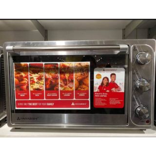 Hanabishi electric oven 32 liters. The hanabishi oven toaster is a handy kitchen essential. Timer with bell ring with convection rotisserie function inner light indicator lamp heater selector switch tempered glass door stainless steel heating elements 5 stages of switch heating and function selector accessories. To use the toasting function for bread slices are placed on the shelf horizontally. Shop your next home appliances today here.