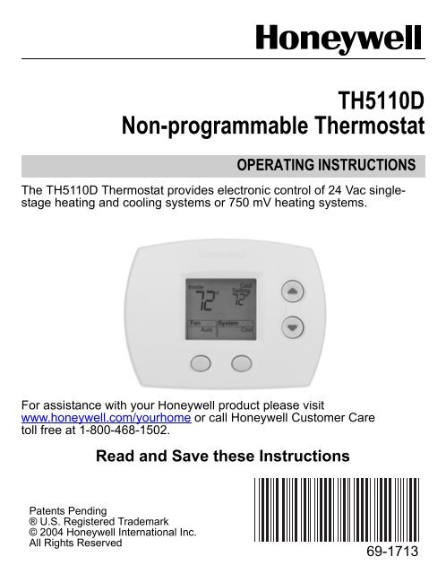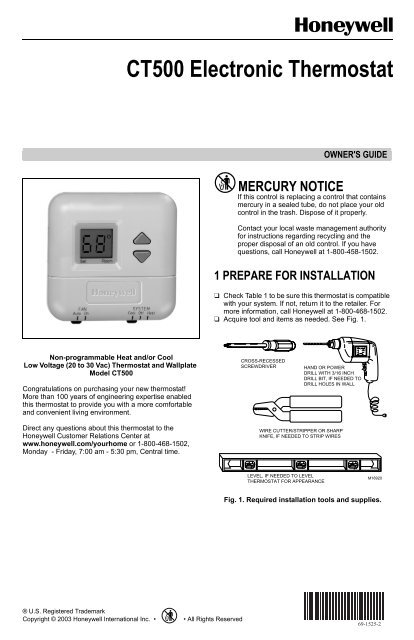 Honeywell Standard Non Programmable Thermostat Ct5x Manual And User Guide Manualsmania
